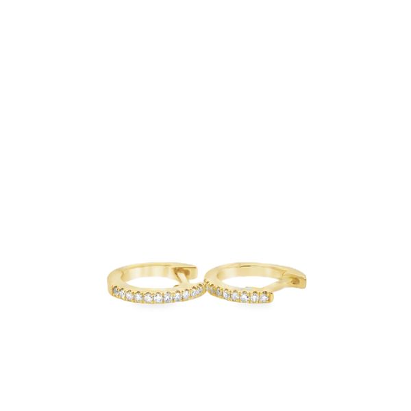 (786) 470-4423Yellow Gold Hoop Earrings with Round Brilliant Cut Diamonds