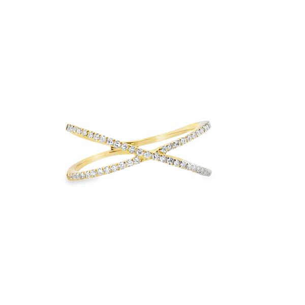 (786) 470-4423Yellow Gold Crossover Band Ring with Round Cut Diamonds