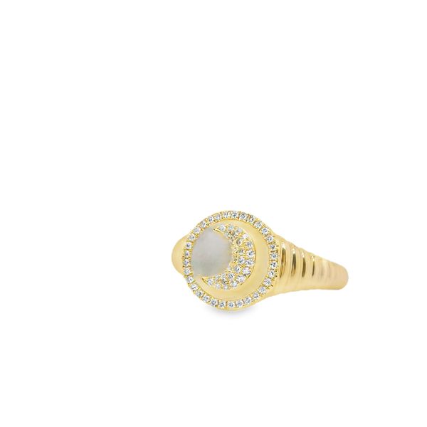 (786) 470-4423Yellow Gold Signet Ring with Round Moonstone