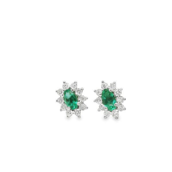 (786) 470-4423White Gold Stud Earrings with Cabochon Emeralds